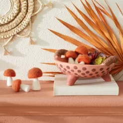 Bring striking appeal to your seasonal decor with this Polka Dot Bowl from Opalhouse™ designed with Jungalow™. Made from terracotta and finished with allover red polka dots, this decorative bowl features a round silhouette with a wide open top, and it’s supported on three small taper legs to lend rustic charm to your space. Plus, the two side handles with wicker-like accents bring extra flair to the piece. A great decorative accent for your mantel, entryway console, coffee table and more, you can fill it with small fall-inspired fillers for eye-catching seasonal style.