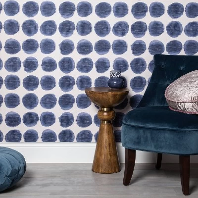 Liven up any room in your home with the Textile Dot Peel and Stick Wallpaper from Opalhouse™. This wallpaper has a playful pattern of large polka dots that’s kept from being too busy by a neutral color palette of navy blue dots against a beige backdrop, making it perfect for anywhere from the kitchen to the bathroom to a living room accent wall. The wallpaper has an adhesive back that makes it easy as can be to apply — simply cut the needed amount, peel off the backing and stick to the wall with none of the mess or fuss of traditional wallpaper. One roll provides enough for 27.5 square feet of space, and the wallpaper has a vinyl finish that’s easy to keep clean.